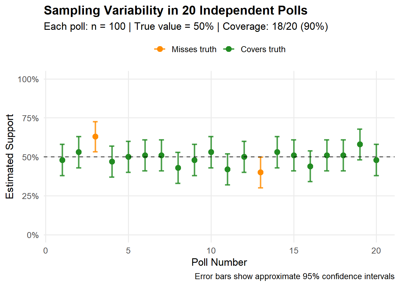 For example, if 6 out of 10 people support a policy (coded as 1=support, 0=don’t support):