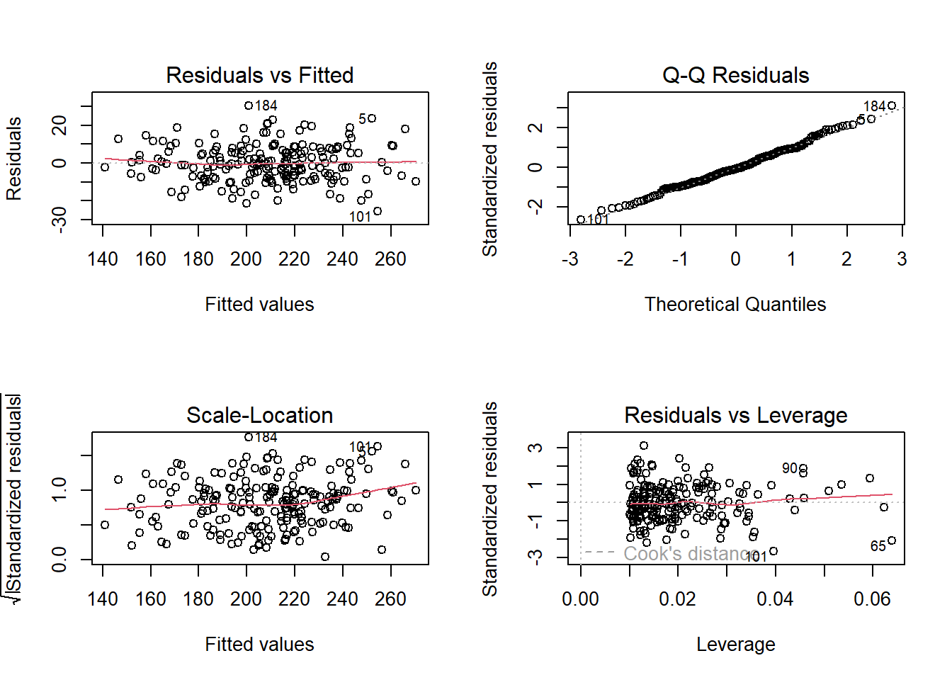 (Intercept) 89.6872 3.6682 24.450 0.000000308 ***