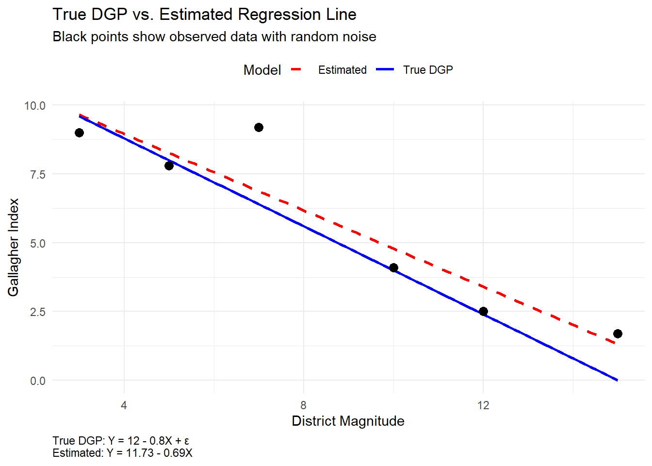Our model is: y_i = \beta_0 + \beta_1 x_i + \epsilon_i