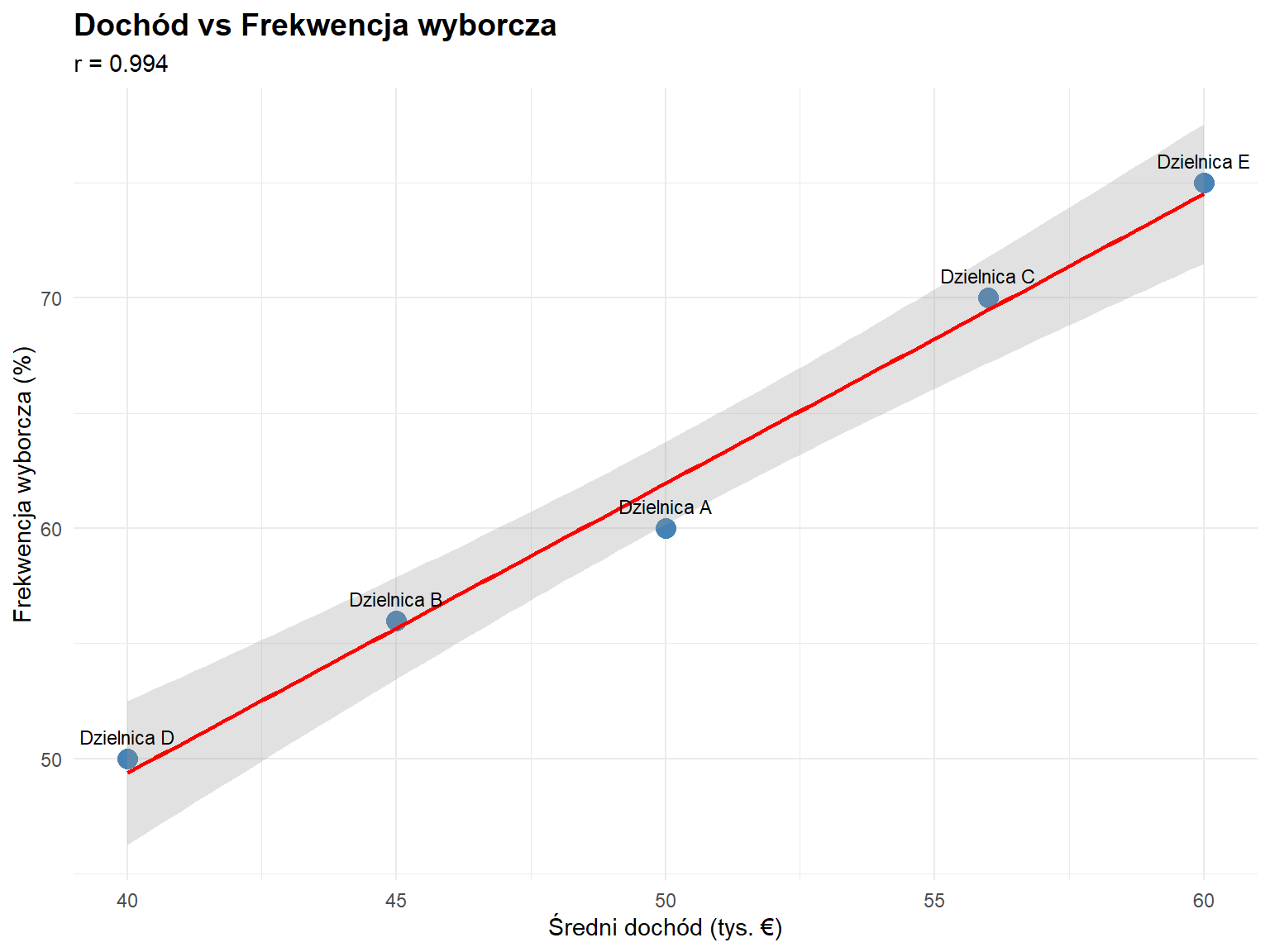 # Przedział ufności i p-valuecor_test <-cor.test(study_hours, test_scores, method ="pearson")print(cor_test)