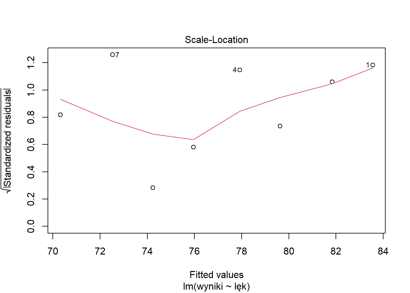 R-kwadrat: 0.651 wskazuje, że około 65.1% wariancji dysproporcjonalności wyborczej (wskaźnik LH) może być wyjaśnione przez wielkość okręgu. Jest to dość wysoka wartość, sugerująca, że wielkość okręgu jest rzeczywiście silnym predyktorem dysproporcjonalności wyborczej, choć mniejszym niż w poprzednim zestawie danych.