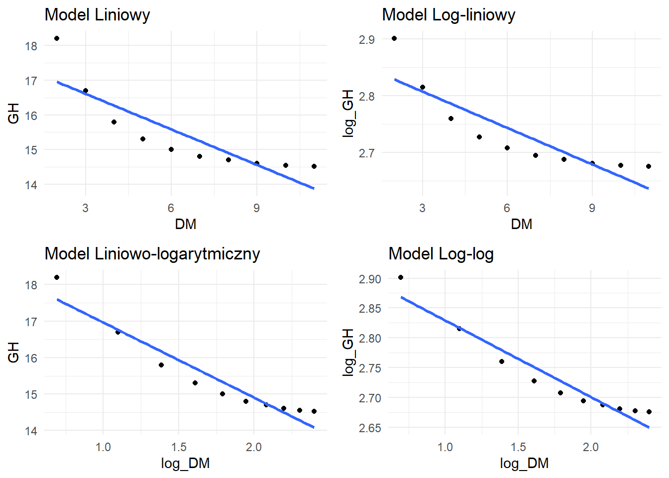 Model regresji: LH = 16.511 - 0.974 \cdot DM
